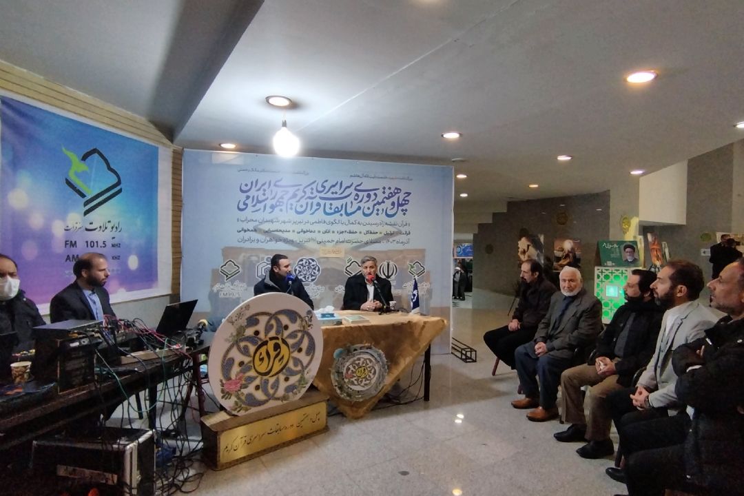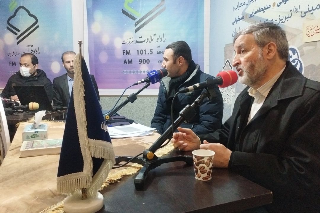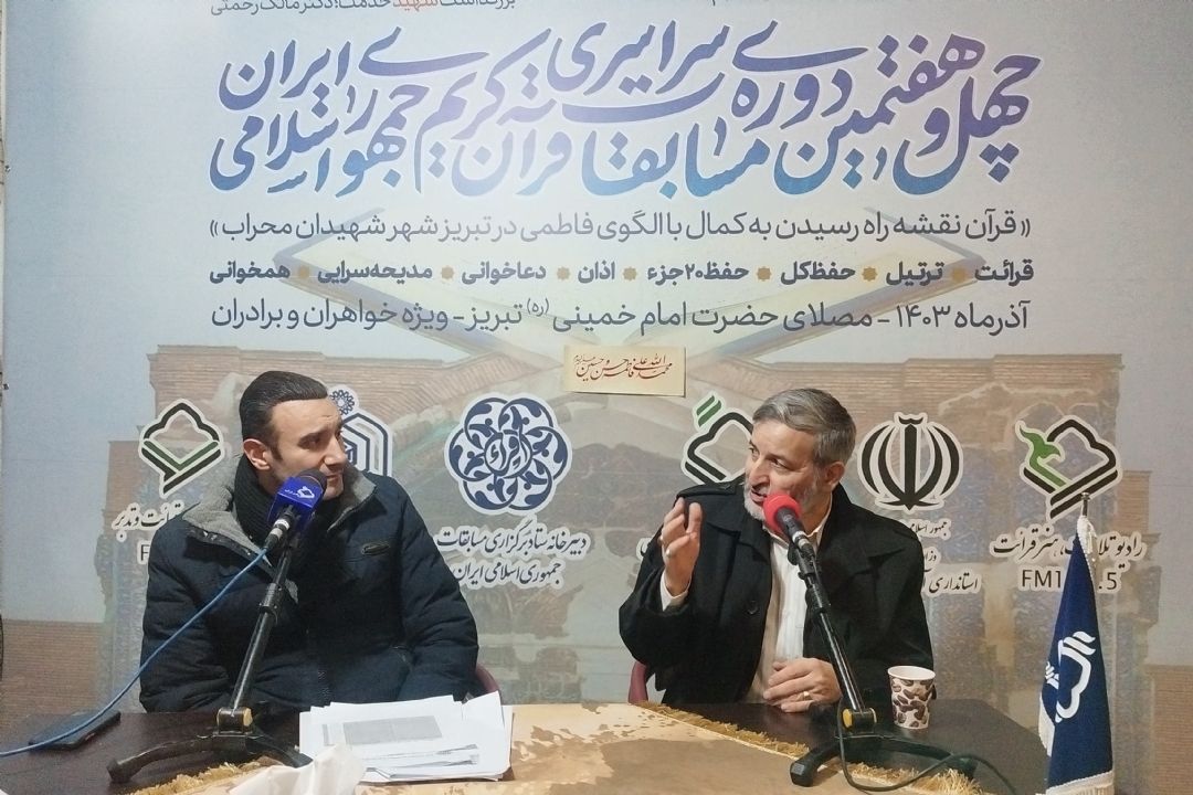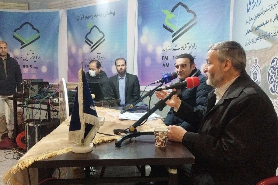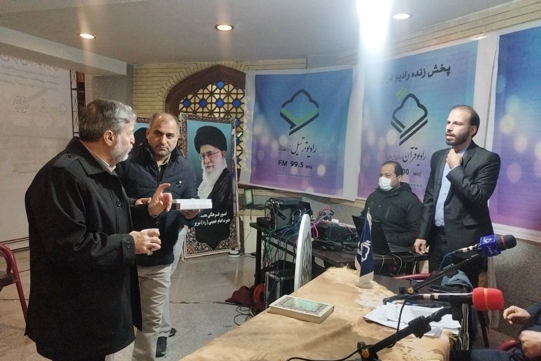 حضور مدیر شبكه رادیویی قرآن در استودیوی مستقر در محل برگزاری مسابقات سراسری قرآن كریم