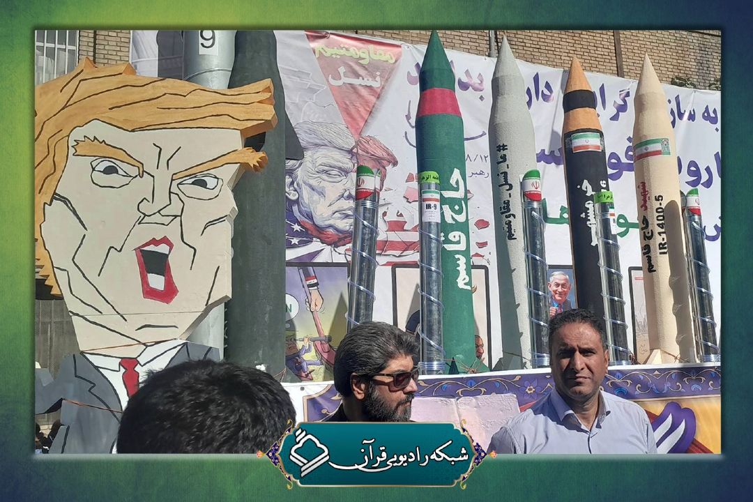 هم‌زمان با فرارسیدن روز ملی استكبارستیزی، كاركنان و مدیران رادیو قرآن با حضور در راهپیمایی باشكوه 13 آبان، همراه با اقشار مختلف مردم، با شعارهای وحدت‌آفرین و ایمانی، انزجار خود را از استكبار جهانی و رژیم‌های زورگو اعلام كردند.