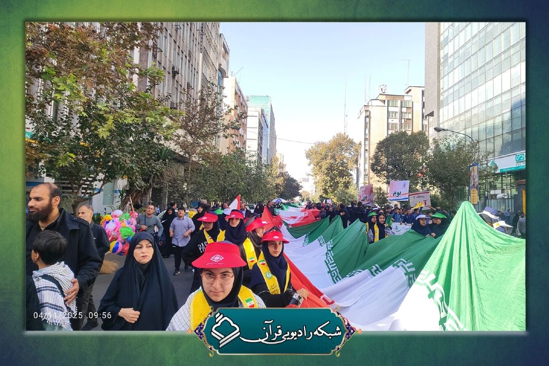 حضور پرشور خانواده رادیو قرآن در راهپیمایی 13 آبان