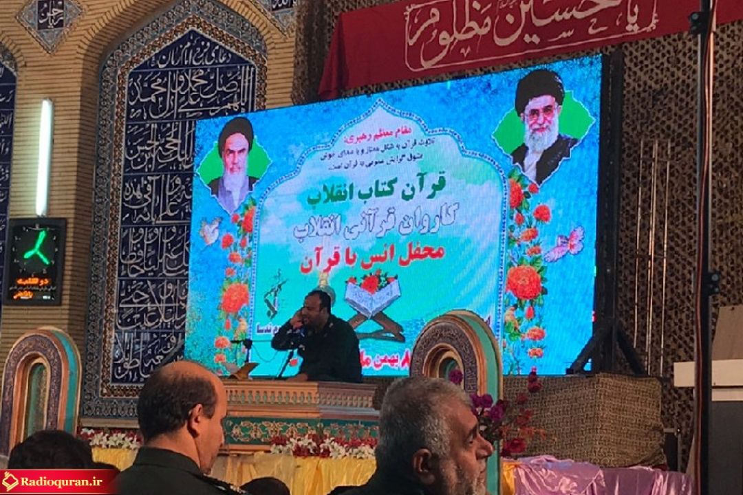 محفل انس با قرآن كریم، صبح دوشنبه 8 بهمن ماه با حضور اعضای كاروان قرآنی انقلاب، قاریان بین المللی و بومی و نیروهای دریایی سپاه جمهوری اسلامی ایران در پایگاه سوم دریایی سپاه بندر ماهشهر با اجرای محمدرضا پورمعین برگزار شد.